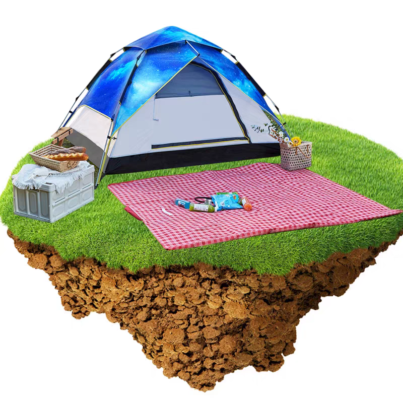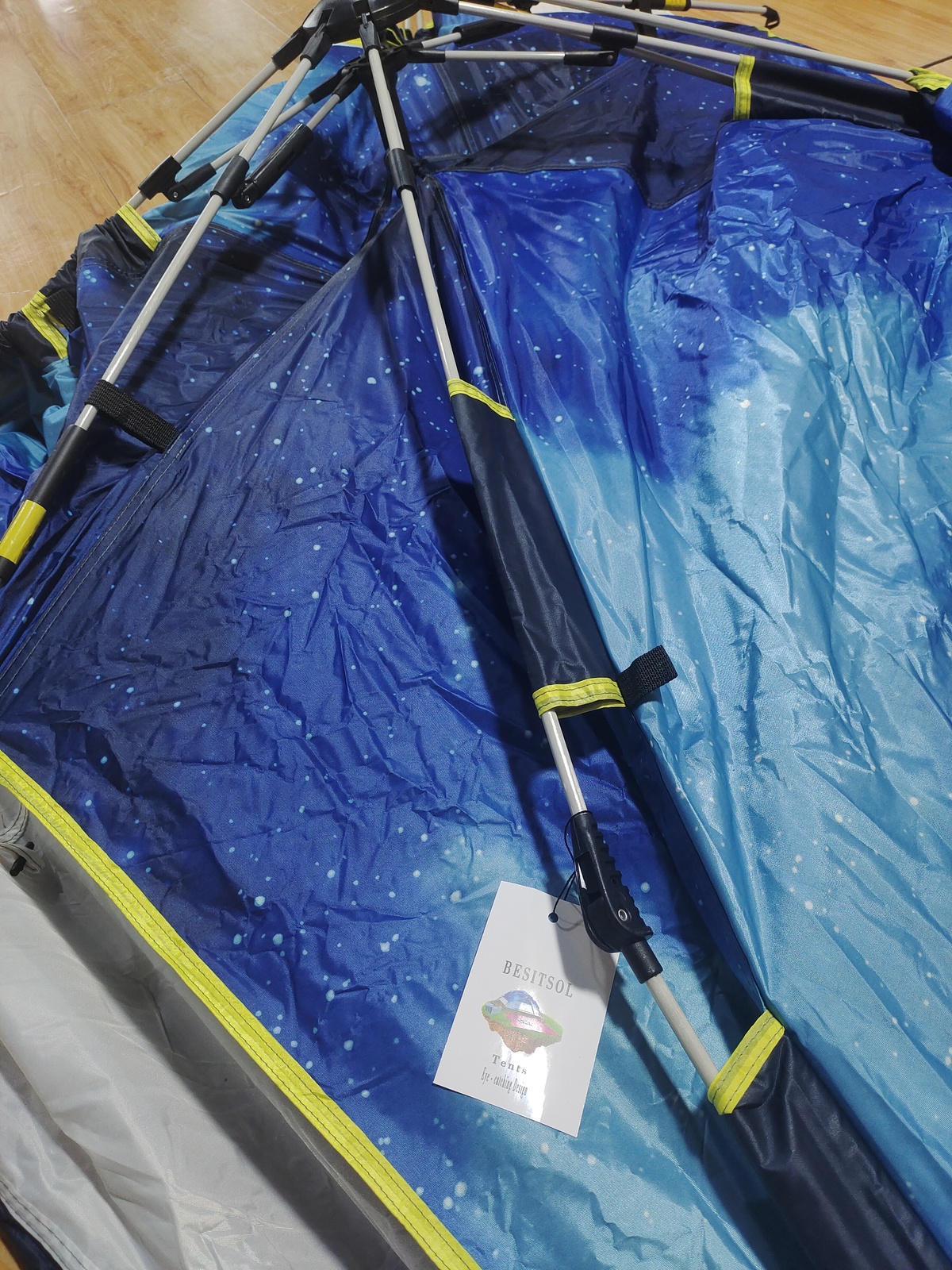 The tent features a stunning starry sky pattern on the top, adding a touch of charm and uniqueness to your outdoor camping experience.