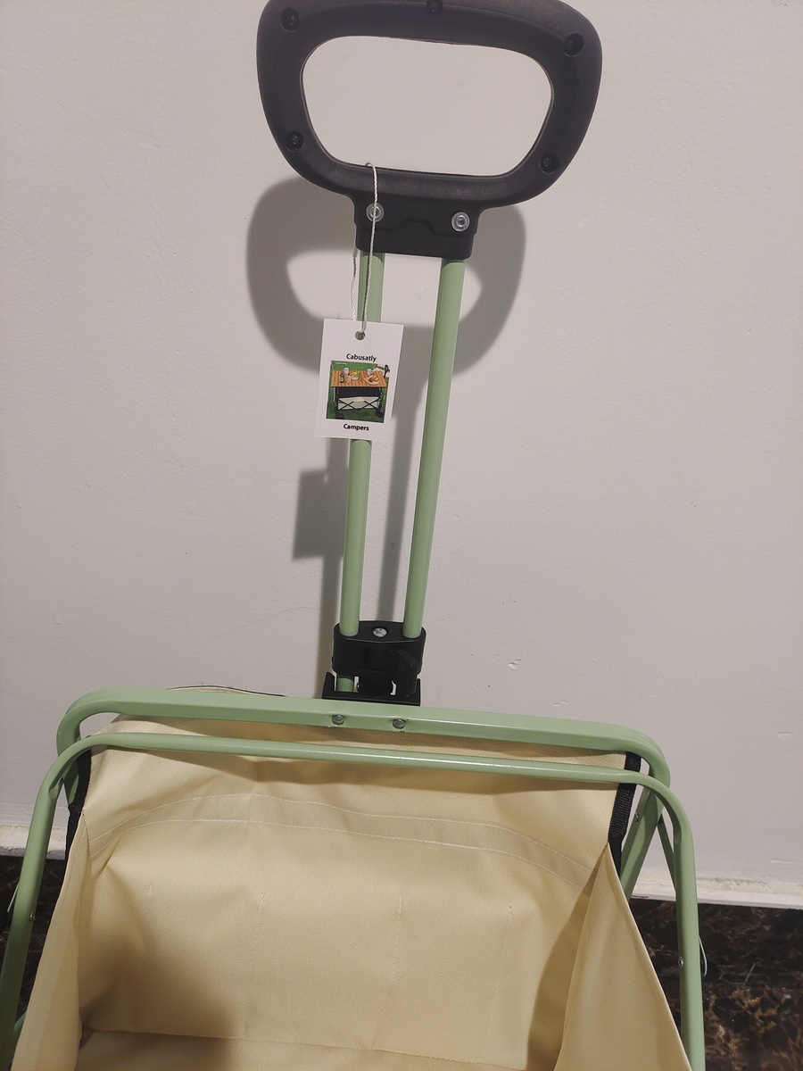 Sturdy lightweight metal frame (with a matte green finish) supports heavy loads, while the thick, tear-resistant fabric bin safely holds groceries, picnic supplies, or daily items.