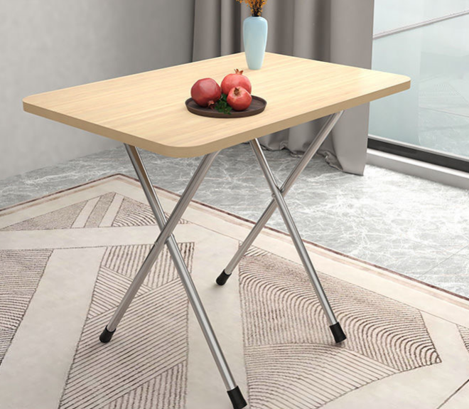 Smooth wood-grain tabletop paired with metal legs (equipped with non-slip foot pads) — supports daily use while preventing scratches on floors.