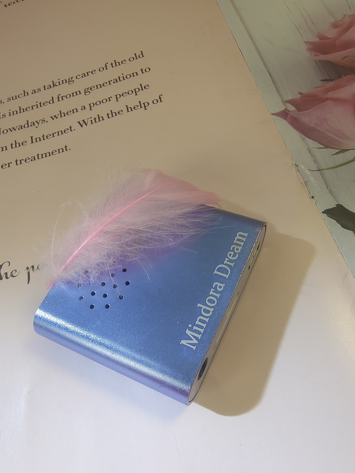 Boasts a small, square shape with a sleek blue and white color scheme, making it highly portable and visually appealing, easy to carry in pockets or bags.