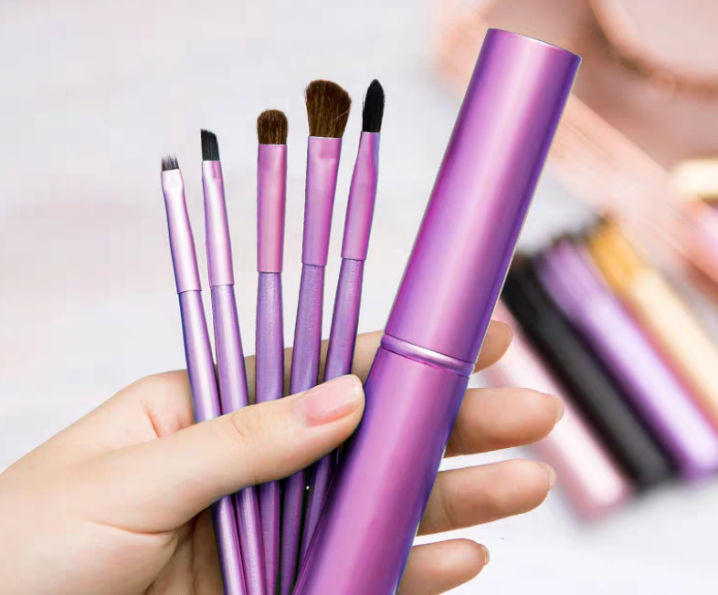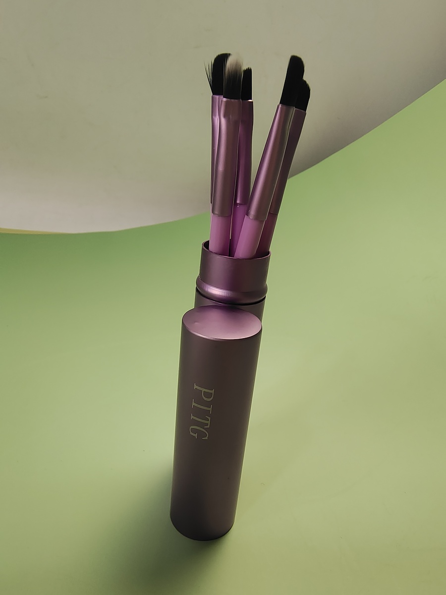 Matte purple metal case + matching brush handles — sleek aesthetic with sturdy construction, both stylish and long-lasting.