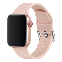 Features a square display with a sleek metal bezel and a pastel pink silicone strap, blending fashion and simplicity to complement various outfits.