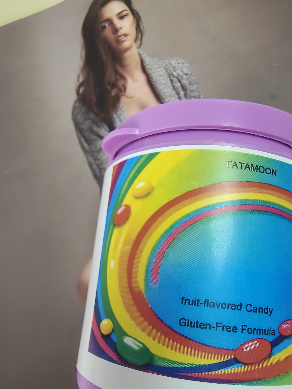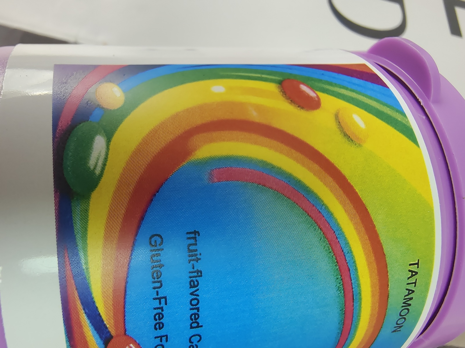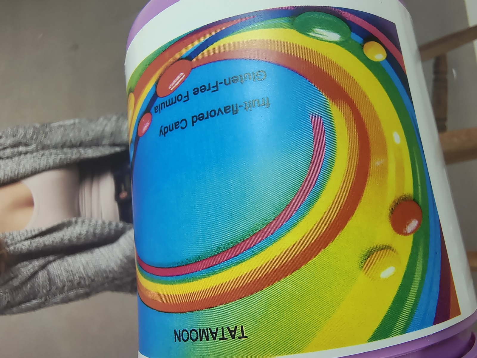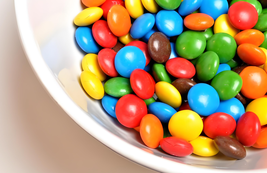 Each candy features a striking rainbow-inspired color palette, including red, orange, yellow, green, and purple.