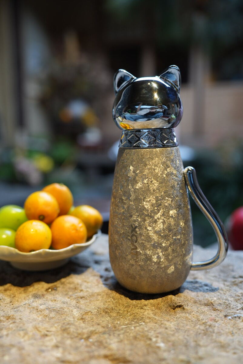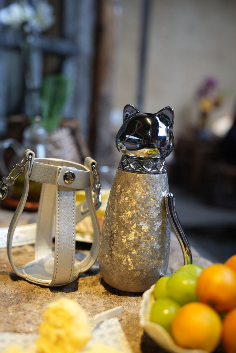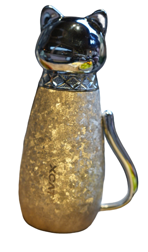 Features a polished, mirror-finish cat-head lid with 3D ear details, plus a sleek cat-body silhouette—adds a playful, decorative touch to any tabletop
