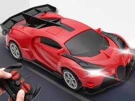 This remote - control car boasts a sleek and realistic sports car appearance, with a vibrant red body and black accents that make it visually appealing.